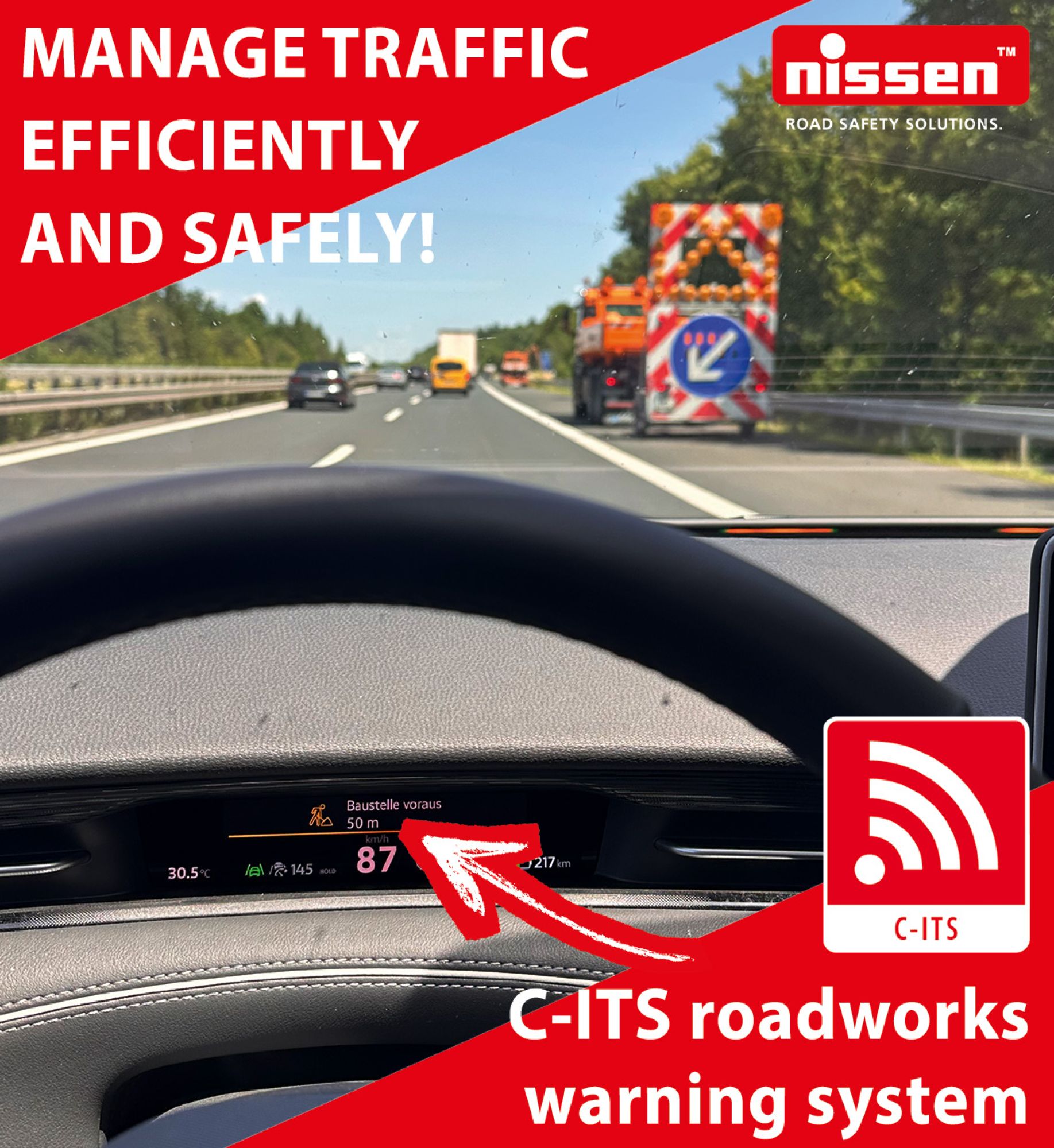 Good to know: Our Mobile Warning Trailers – in other words, all devices equipped with a Nissen communication unit – can be fitted with a C-ITS box at the factory or retrofitted easily at a later stage. You can find more information HERE