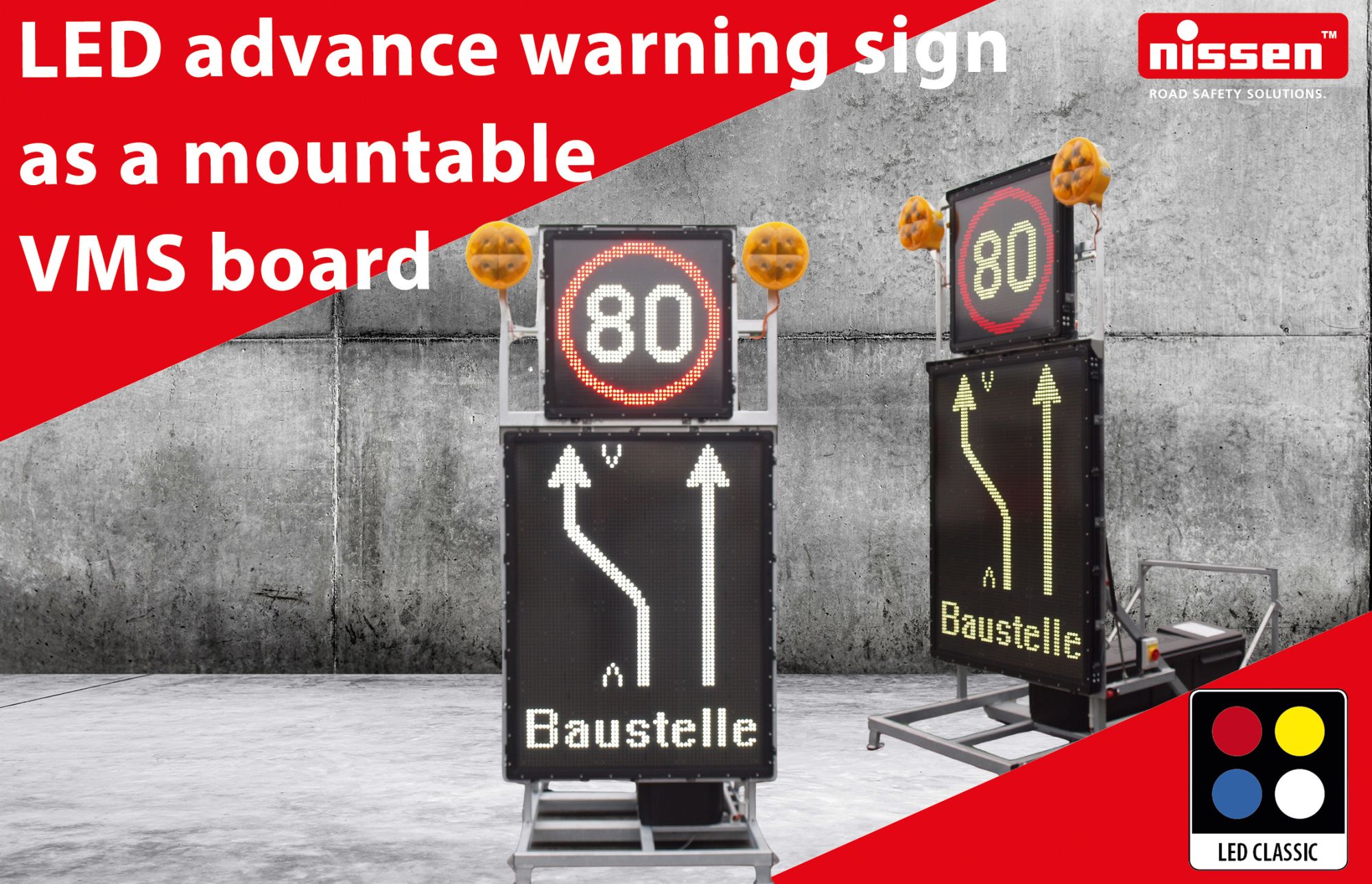 LED advance warning sign as a mountable VMS board