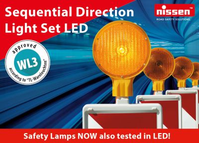 The sequential Direction Light Set can be operated with a 12 V battery via a center feed between the lamps or optionally with a 230 V power supply/charger in “mains-battery operation”