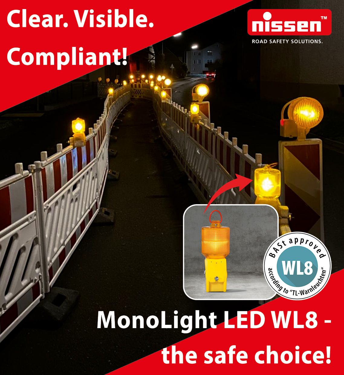 With our Warning Board Type B and LED Light Arrow LP 15, we provide you a safe and compliant solution for mowing work on roads with oncoming traffic.
